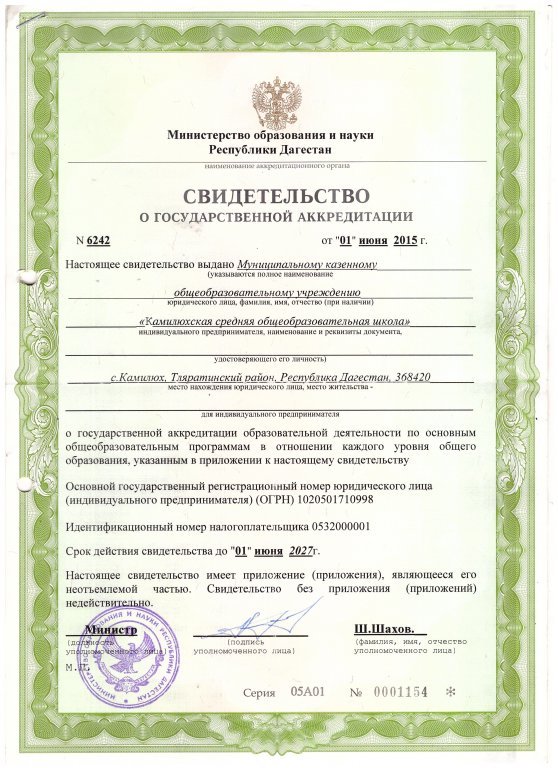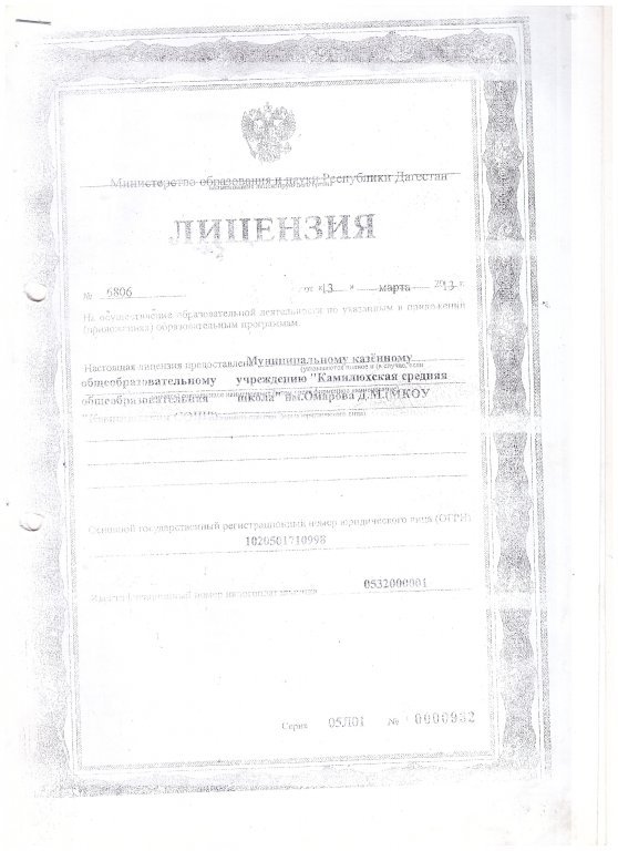 Полное наименование образовательной организации* Муниципальное казенное общеобразовательное учреждение "Камилюхская СОШ"