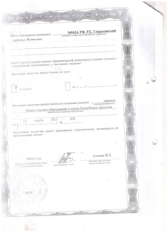 Адрес местонахождения образовательной организации* 368424,Республика Дагестан,Тляратинский район,с.Камилюх,